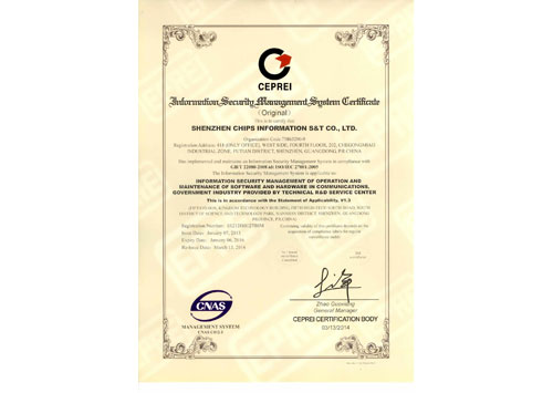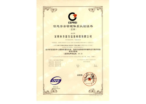 信息安全管理體系認(rèn)證證書(shū)(正本)
