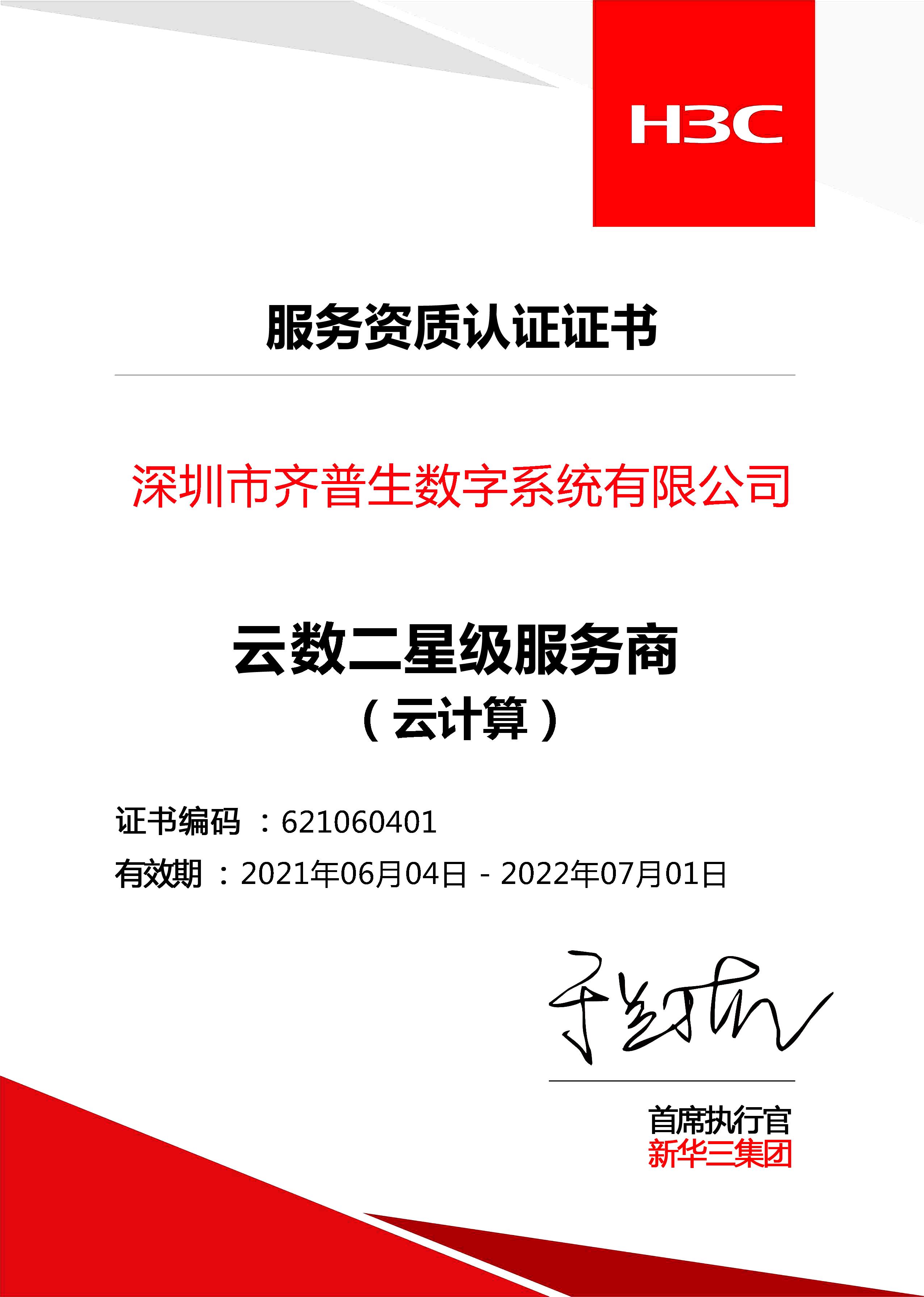 H3C總代證書(shū)(珠海公司)