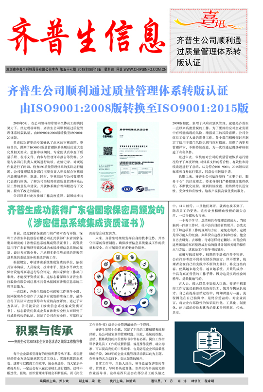 齊普生成功獲得廣東省國家保密局頒發(fā)的 《涉密信息系統(tǒng)集成資質證書》