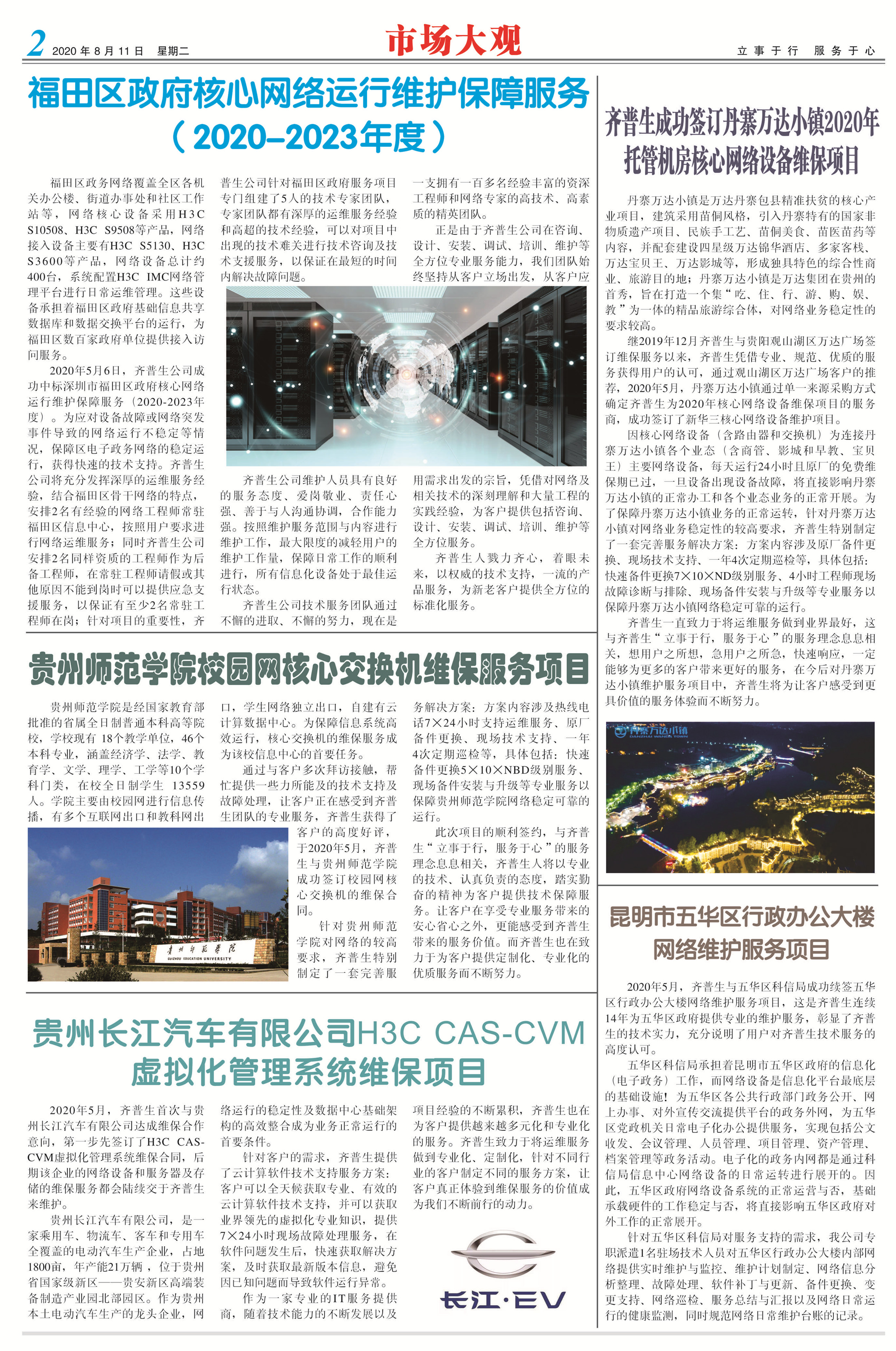 - 齊普生成功簽訂丹寨萬(wàn)達(dá)小鎮(zhèn)2020年托管機(jī)房 核心網(wǎng)絡(luò)設(shè)備維保項(xiàng)目 2020-08-25