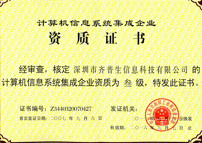 計(jì)算機(jī)信息系統(tǒng)集成企業(yè)資質(zhì)證書(三級(jí))